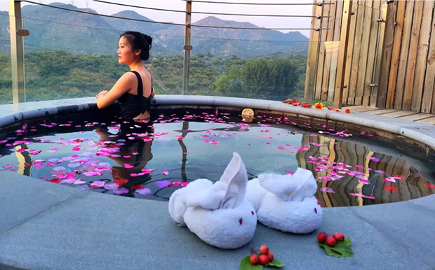山顶汤屋这是度假村客房最具特色的区域,山顶星空温泉汤屋,面积约54平米,共设有惜泉、听泉等6间,纯木制打造,配有室外悬空私密泡池,置身悬空泡池,可以极目远眺,令人心旷神怡,我们还将为入住的客人提供专属的温泉汤料,同时入住汤屋的客人可以无限次往返温泉园区。
